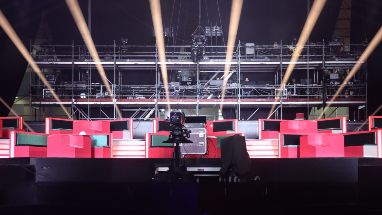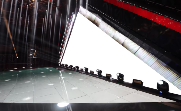 El Palau d’Esports l’Illa de Benidorm ya está listo para acoger el Benidorm Fest 2025. Tras intensas jornadas de montaje, el escenario, con un diseño triangular nunca antes visto en el festival, ha cobrado vida. Esta estructura, de casi 30 metros de ancho, cuenta con una gran pantalla triangular en el suelo y otra vertical de grandes dimensiones, que junto a las dos escaleras laterales y el vértice apuntando al público, prometen una experiencia visual impactante.