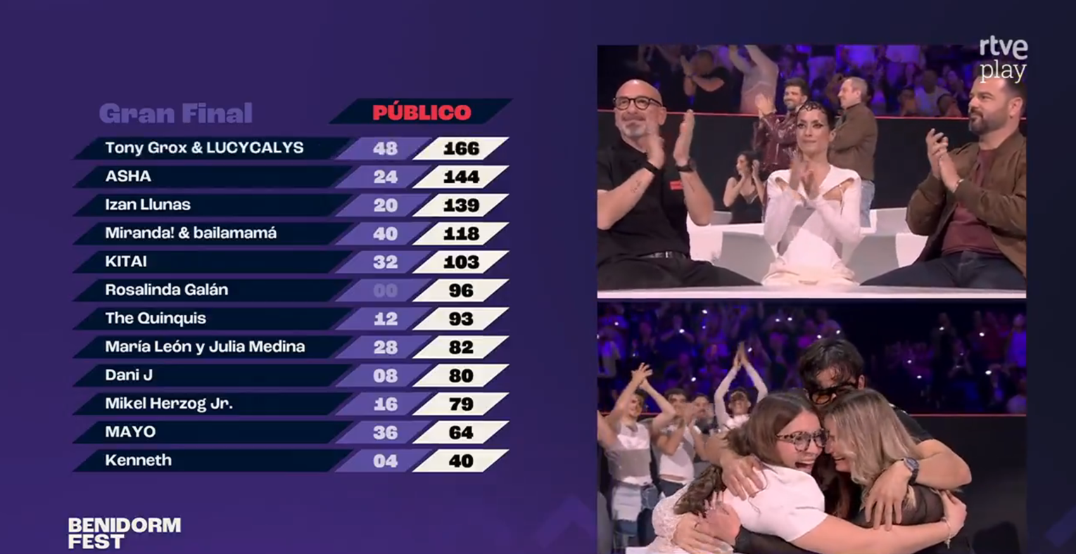 La ciudad de Benidorm ha vuelto a brillar como la capital de la música española. En una noche llena de sorpresas, emoción y un despliegue visual sin precedentes, Tony Grox & LUCYCALYS se han proclamado vencedores del Benidorm Fest 2026. Con su tema “Te amaré”, ha logrado conquistar la sirenita de oro y el gran premio económico de la edición más ambiciosa hasta la fecha.