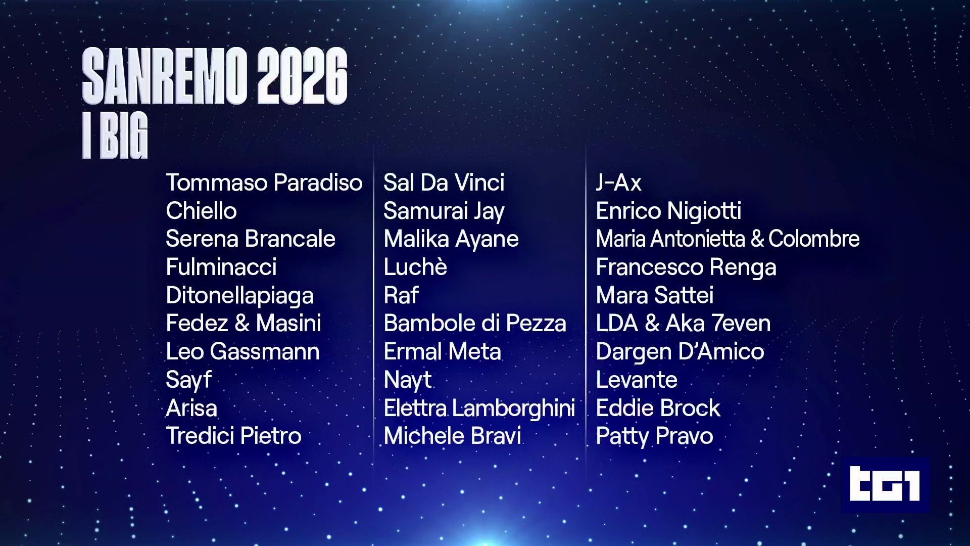 Finalmente, se han revelado los nombres de los 30 artistas que competirán en la categoría “Big” de la 76.ª edición del Festival di Sanremo 2026. A pesar de los recientes rumores de crisis y retirada de grandes nombres, el director artístico Carlo Conti ha anunciado la lista completa durante la emisión de TG1 en Rai 1.